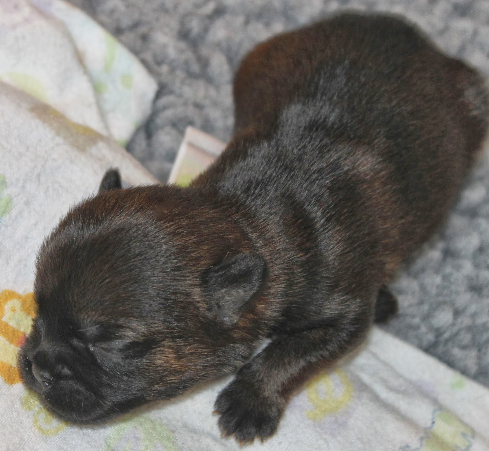 "Porkchop," the big grizzle boy, broke the one pound mark yesterday! The two blue girls are close behind, weighing in at 14 ounces yesterday! The two little ones (blue boy and grizzle girl) are over ten ounces and working very hard to catch up! Soon, they'll be start to stay awake and play after nursing. Can't wait for that!
